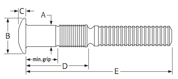 C50L30-BR20-16GA Truss Head Huck Bolt, 5/8" Dia.